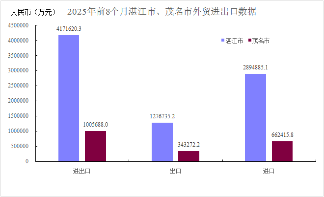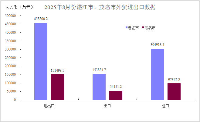 2025年前8个月湛江市 、茂名市外贸进出口数据